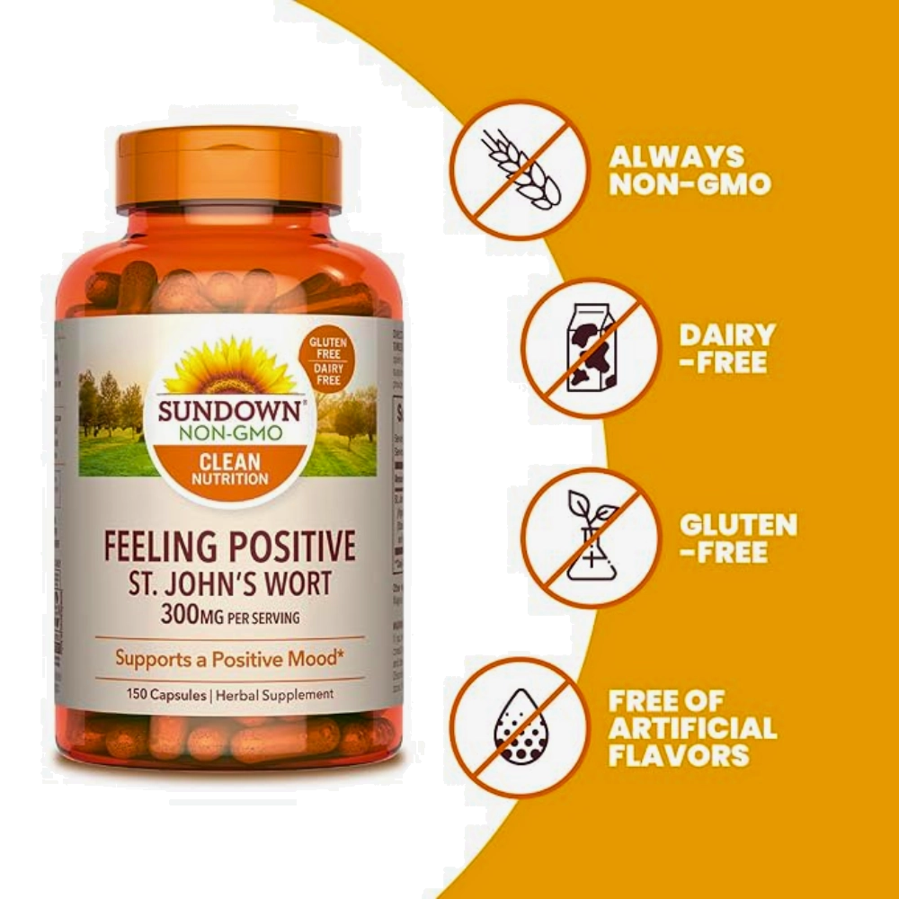 St. John's Wort, Feeling Positive, 300mg, 150 Cápsulas, Sundown