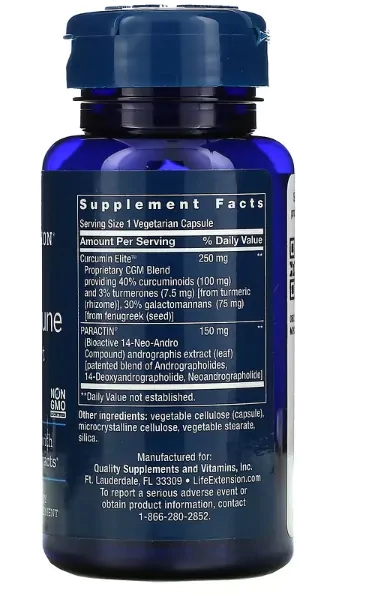 O extrato de quireta verde PARACTIN (Andrographis paniculata) vem de uma erva nativa da Índia e do Sri Lanka. Curcumina Elite é uma combinação de extrato de curcumina de cúrcuma com fibras de feno-grego para auxiliar na biodisponibilidade. E esses dois nutrientes inovadores para a saúde das articulações estão incluídos no Arthro-Immune Joint Support.