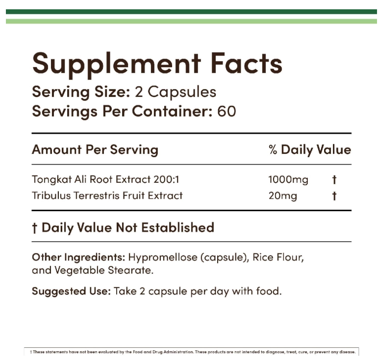 Tongkat Ali com Tribulus Terrestris 1020mg por Dose, 120 Cápsulas, Double Wood