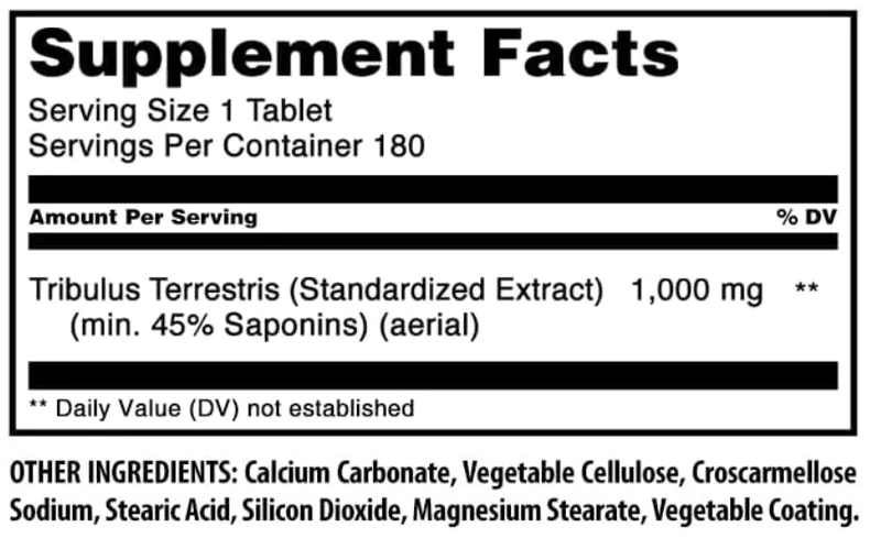 - Fórmula de alta potência: Cada porção fornece 1000 mg de extrato de Tribulus, garantindo que você obtenha uma dose eficaz para aproveitar todos os seus benefícios.