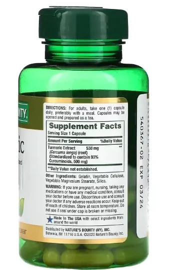 Turmeric curcuma 538mg, 45 Cápsulas, Natures Bounty