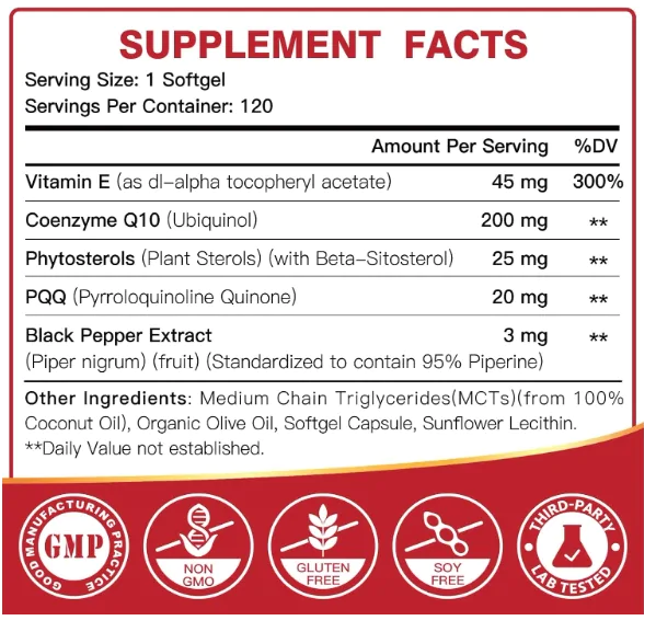 Nossa fórmula premium de CoQ10 foi desenvolvida para apoiar a saúde do coração, promovendo uma função miocárdica saudável e oferecendo proteção cardiovascular abrangente. Enriquecida com vitamina E e fitoesteróis, ela combate os radicais livres, ajudando a reduzir riscos cardíacos e promovendo um coração mais forte.