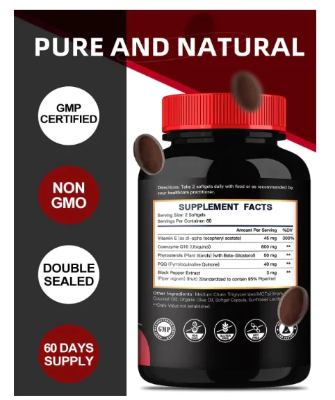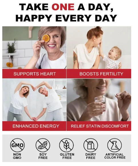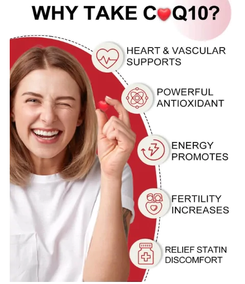Suporte à saúde do coração:é crucial para a função cardí A CoQ10 é crucial para a função cardíaca, garantindo que os músculos do coração recebam energia adequada para um desempenho ideal.
