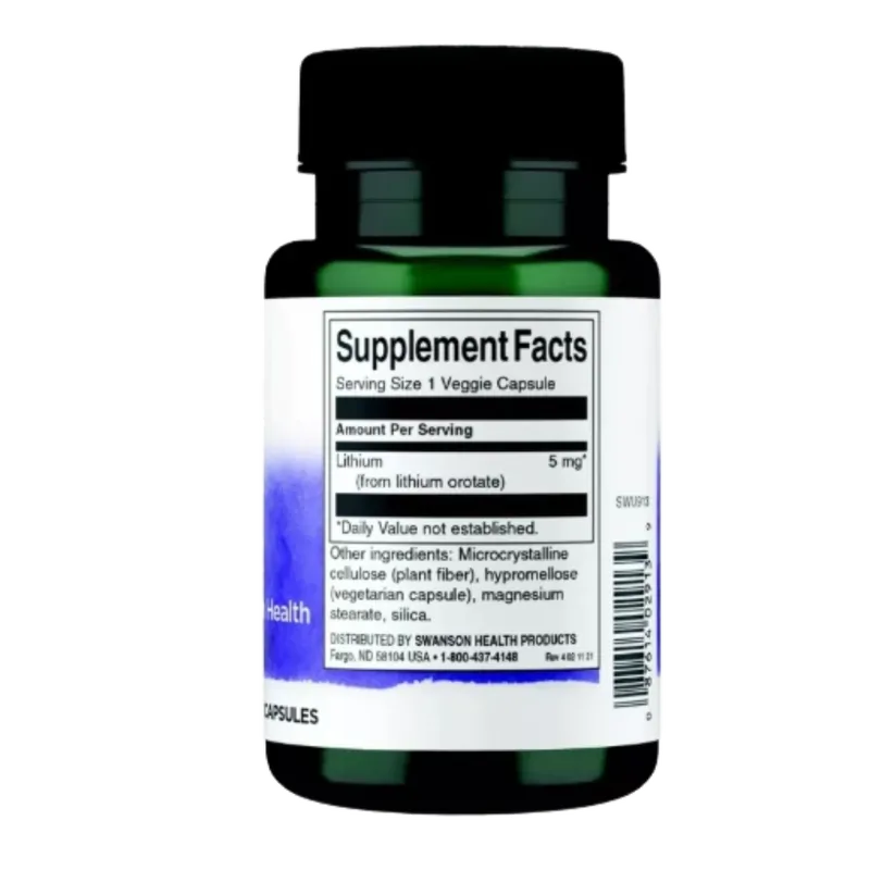 Por que escolher o Swanson Ultra Lithium Orotate? O Lithium Orotate 5mg oferece lítio em baixa dose, ligado ao ácido orótico, garantindo alta biodisponibilidade. Suporta a saúde cognitiva, equilíbrio emocional e bem-estar mental, com auxílio na saúde óssea. |