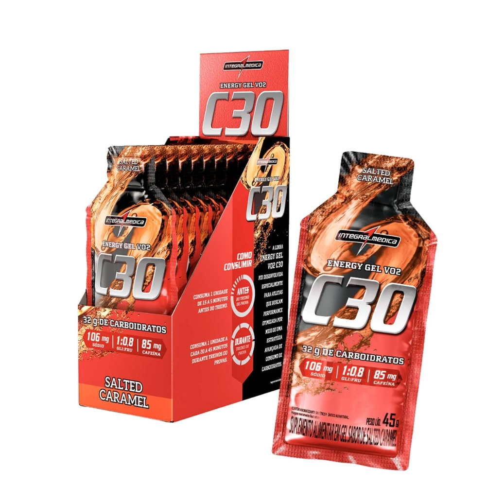 VO2 Energy Gel, Repositor Energético, Caixa com 10 Unidades Sabor Caramelo Salgado, Integralmedica