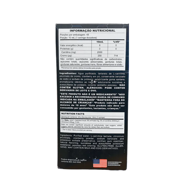 Cada porção contém L-Carnitina, Picolinato de Cromo, cranberry, goma xantana e adoçantes naturais. Não contém glúten, açúcares adicionados, lactose ou ingredientes artificiais.